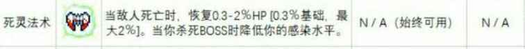 玩命技能,当你要打boss而自身又太过单薄,变异三个槽位没法找齐三个有用的天赋,那么死者之心会是一个不错的选择。