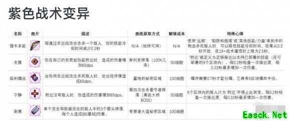 B:武器大师的本能、接纳、受虐狂、脱离战场武器大师的本能属于近战红流会去选择的天赋,比如刺客流。相对于杀戮天性来说,武器大师的本能可以用月BOSS战,但是如果不能稳定维持暴击率,在跑图方面就不如杀戮天性好用。接纳可以减少诅咒的数量,如果你想拿诅咒宝箱又对操作没有自信的话,可以带一个接纳减低难度,最后BOSS战换掉即可。受虐狂适用于遇见陷阱疯狂掉血的选手。脱离战场并不能防止流血中毒等效果,低于20%血量120秒触发一次也显得这个变异非常鸡肋。(不排除之后的版本会对这个天赋进行加强)