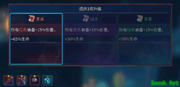 因为红色流派主要是考虑暴击这个属性值,因此我们的武器组合要注重这方面的加成。其中比较出色的装备组合为:刺客匕首配搭位移,迅捷之剑配搭速度变异。