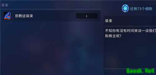 接着我们就需要回去,找收藏家解锁这个邪教徒装束,1细胞就可以解锁,完成以后,重新开始就可以穿上了。