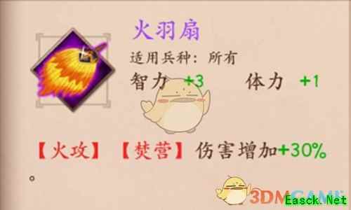 火羽扇是策魂三国中的宝物之一,很多小伙伴对于这个宝物的属性技能不太了解,那么小编就给大家介绍一下这个宝物,下面小编给大家带来《策魂三国》火羽扇属性技能图鉴一览,还不清楚的小伙伴赶紧来看看吧。