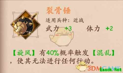 裂骨锤是策魂三国中的宝物之一,很多小伙伴对于这个宝物的属性技能不太了解,那么小编就给大家介绍一下这个宝物,下面小编给大家带来《策魂三国》裂骨锤属性技能图鉴一览,还不清楚的小伙伴赶紧来看看吧。