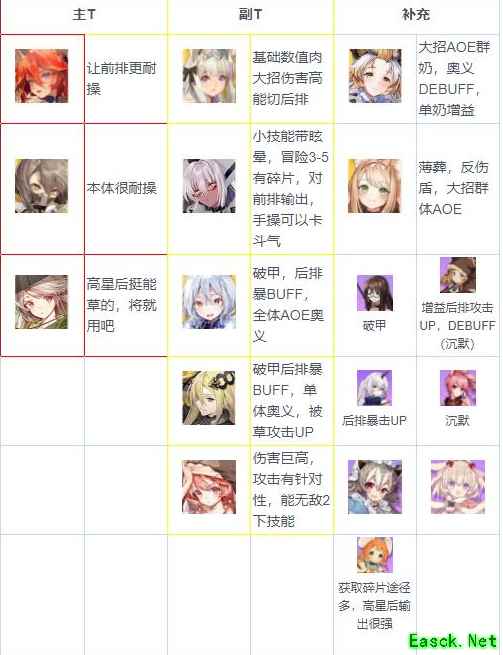 一般前排是1主T2副T的搭配,如果凑不齐副T可以拿补充里的角色