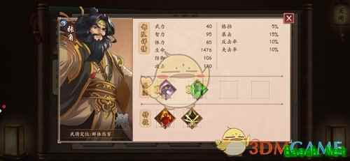 张角这个武将实际上还是主打控制的,95的智力保证了控制技能的成功效果,天赋附带的多重控制以及 生命削减都是非常恶心的。