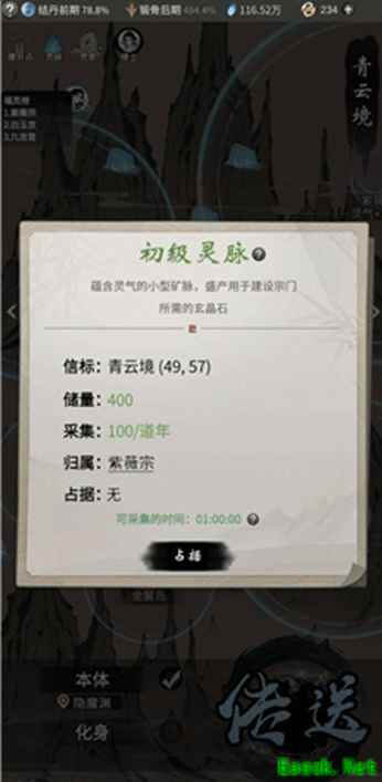 3.当然,也可以选择加入一个实力强大的宗门,采集自己宗门内的灵脉,当然是在允许范围内的。