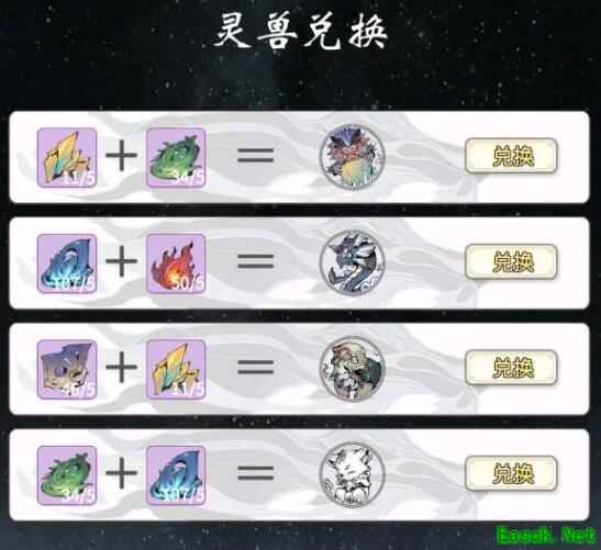 比如狮子需要金+木,就可以分一只狐狸一只乌龟,用他们分解出来的精魄去兑换。