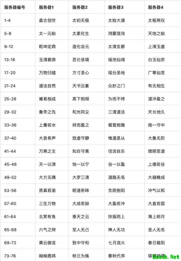 具体可以参见下表,调整后,表格中同一行服务器将开放异界连通。