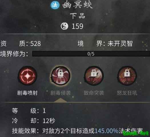 蛟的二三技能说白了都是增加法伤,一四技能是单纯aoe 分别打3和打4个目标,秘境挂机最好应该就是带它。