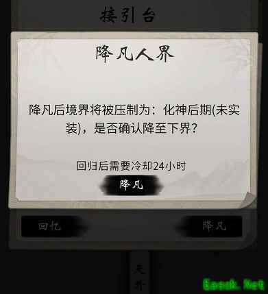 降凡后境界将被压制为化神后期,回归后需要冷却24小时。