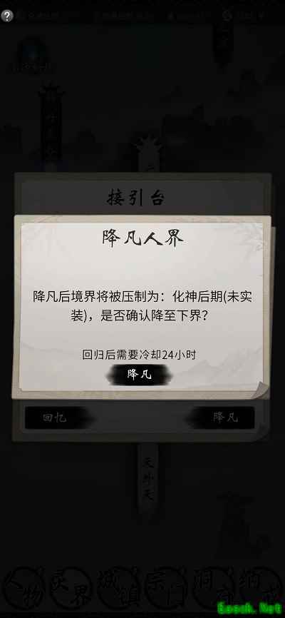 降凡后境界将被压制为化神后期,回归后需要冷却24小时。