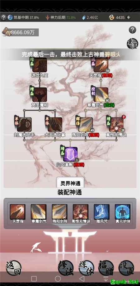 人界——天罡指、剑气、剑阵、离恨决,加上离恨前置技能双盾。升级平滑,不需要额外浪费一点晶石,要单体有单体,要控制有控制,要群攻有群攻,要盾有盾。剑修基本技能也都齐了,剑指、剑气、剑阵、剑诀。