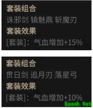 2、另外最新出的星耀之势、破魔三圣套装,套装效果为气血增加10%、气血增加15%,加成非常可观!一定要第一时间拿到,方法是完成各个秘境的探索事件就可以获得,等于白给。
