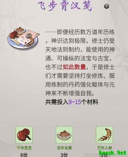 以上就是《一念逍遥》飞步霄汉笺配方介绍,更多游戏攻略请持续关注易采游戏网!