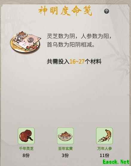 以上就是《一念逍遥》神明度命笺配方介绍,更多游戏攻略请持续关注易采游戏网!