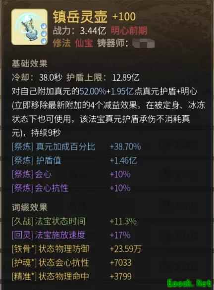 镇岳灵衫:【仙盾】强元加成值提高、回灵、久战。