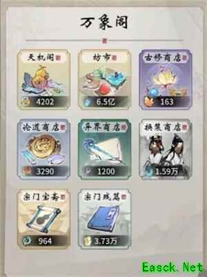 -仙友可通过万象阁选择任意商店进入,包括:坊市、天机阁、古修商店、跨界论道商店、异界入侵商店、外观商店、藏经阁