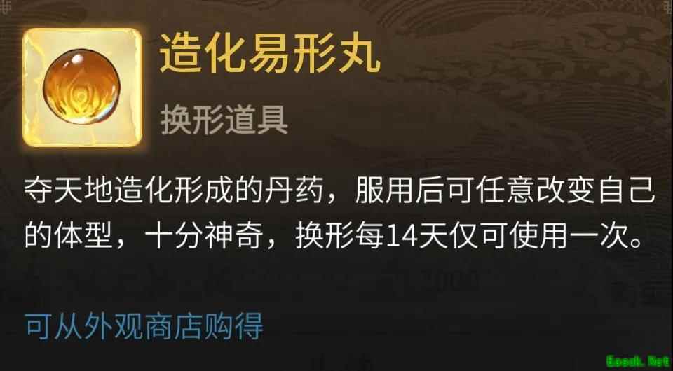 以上就是小编整理的关于《一念逍遥》造化易形丸作用介绍的全部内容,更多游戏攻略请持续关注易采游戏网!