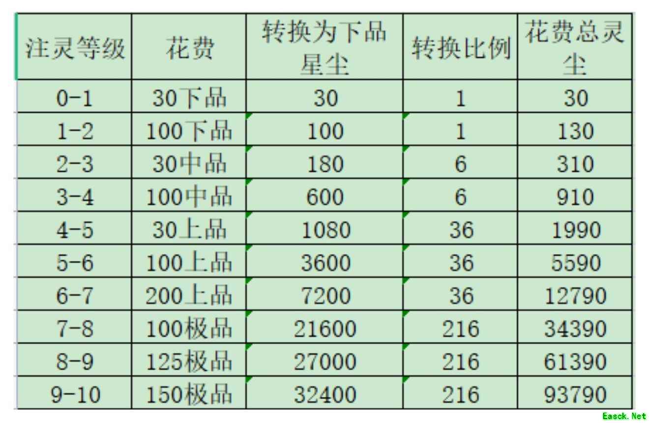 绝不注灵没用的属性,注灵星尘还是比较缺的。很多萌新玩家(包括我自己)都会看到手里有些剩余星尘就想花掉,结果注灵了一大堆一级二级三级对自己收益不大的属性,这些林林总总看起来不少,但低等级的注灵带来的属性加成很低,实际上远不如将这些星尘合成后注灵对自己更有用的属性。