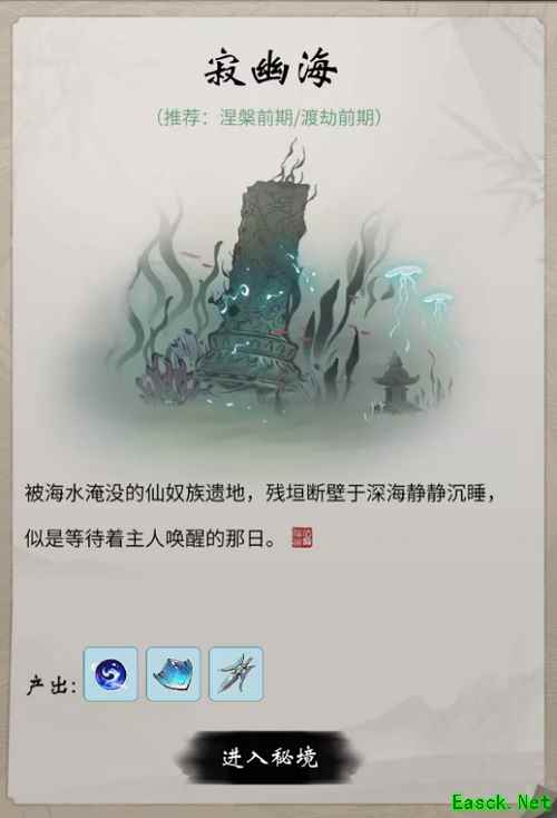 仙奴族遗地早已成为断壁残垣,长眠于寂静幽阴的深海之中,在这里有大量的氐人族士兵把守,只有达到涅槃/渡劫前期的仙友,才有实力前去探索