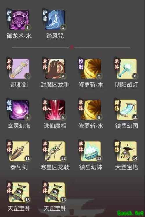 1.诛仙魔相+困龙+修罗斩木+修罗斩水+御龙术水+踏风咒