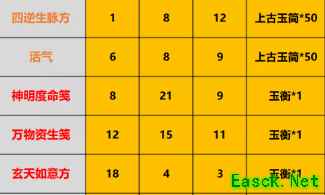 1、四逆生脉方=1千年灵芝+8百年玄黄+12万年首乌,奖励上古玉筒*50。
