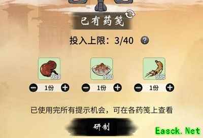 明目方:灵芝数量为玄黄的两倍(材料总合上限为8)