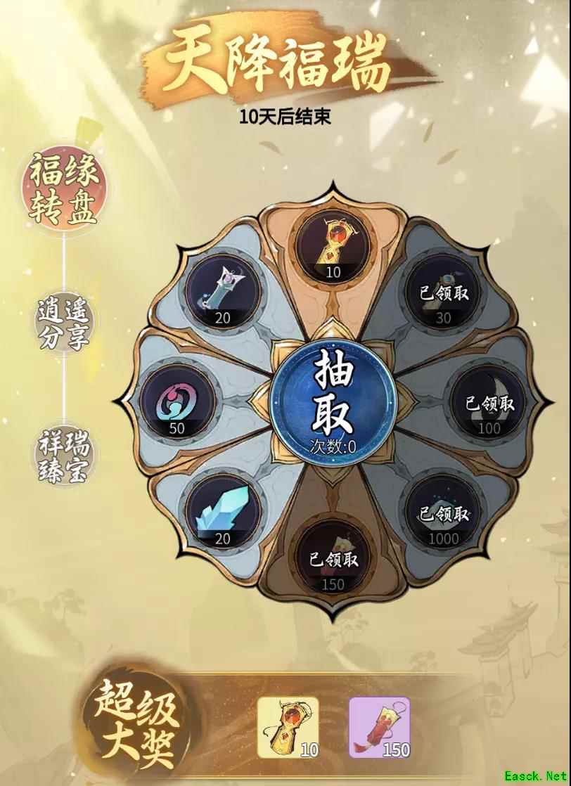 以上就是小编整理的关于《一念逍遥》福缘转盘活动介绍的全部内容,更多游戏攻略请持续关注易采游戏网!