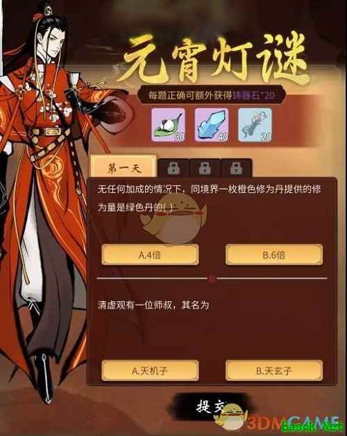 每天将解锁两道与修仙知识有关的元宵灯谜,答题将获得兑换代币【元宵】以及各种其他奖励。