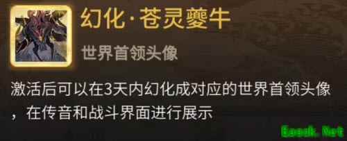 2、激活后可以在3天内幻化成对应的世界首领头像,在传音和战斗界面进行展示。