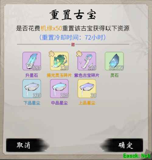 1、只要满足120个紫色古宝碎片后一切都水到渠成了,时装需要四次古宝达到四星,只需要升级一个,然后重置古宝升星下一个即可,重置古宝的CD为三天,那么等重置CD好了依法炮制下一个古宝!下面说一下升星哪几个古宝最佳: