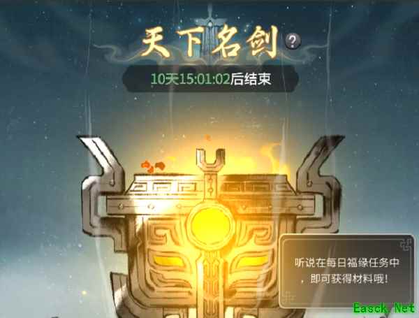 2.活动期间,将开启天下名剑炼制活动,每日将解锁新的神秘剑谱,寻找出配方锻造出天下名剑!不仅可以获得各种资源奖励外,还有专属称号:铸剑大师!