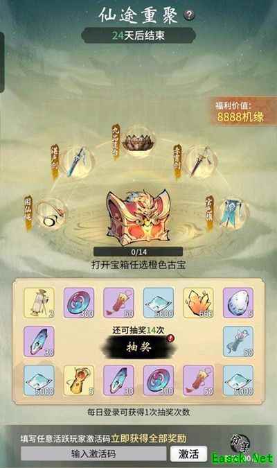 活跃玩家可以通过每日登录来获取抽奖机会,而回归玩家可以通过填写任意活跃玩家分享的激活码来直接领取全部的仙途重聚奖励。