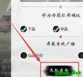 第二步:在屏蔽系统广播这一栏的下面可以看到【天机密令】点击进入;