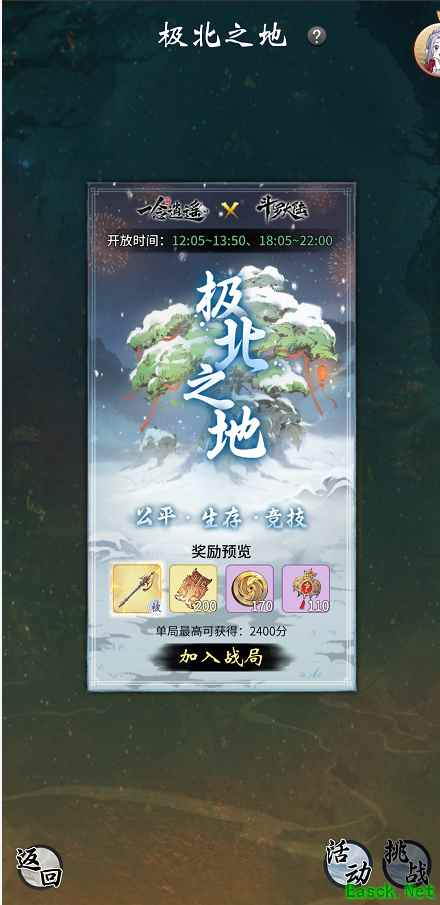 老玩家都不陌生了,首次登场为凡人联动的赤色禁地,这次改成极北之地卷土重来!可以理解为一念逍遥版大逃杀,活动开放七天,每天中午和下午开放两小时左右,期间可以自由参与活动,不限场次!