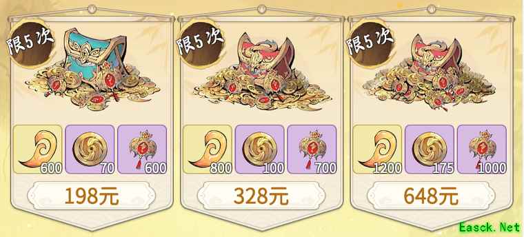 大家在选择后将奖励时一定需要注意,奖励中主要资源为:鸿蒙造化玉、造化玉简、古宝,古宝方面的加成比较可观,推荐最少达到三星,下面介绍礼包资源后给出预计氪金金额!