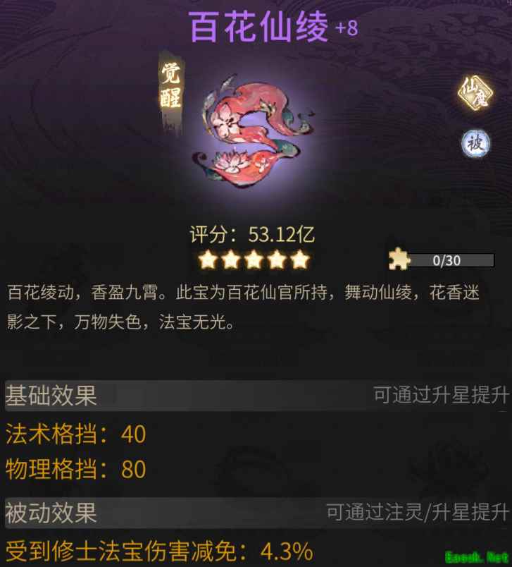 百花仙官化瑶池灵花为“百花仙绫”,绫上花纹绮丽,香盈九霄,可使万物失色,法宝无光。