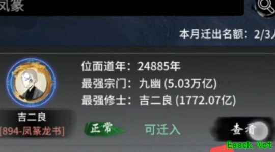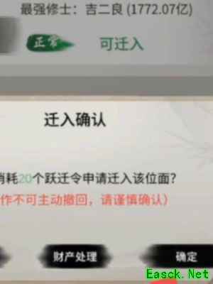第四步:选择好转区的宗门之后点击确认迁入;