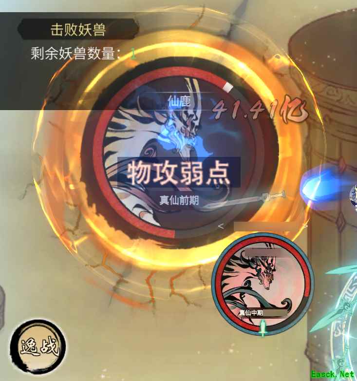 此秘境有两个精英怪,左侧为物攻弱点,右侧为法攻弱点。攻击弱点怪时,如果使用对应的伤害类型攻击,则效果拔群,反之则效果些微。