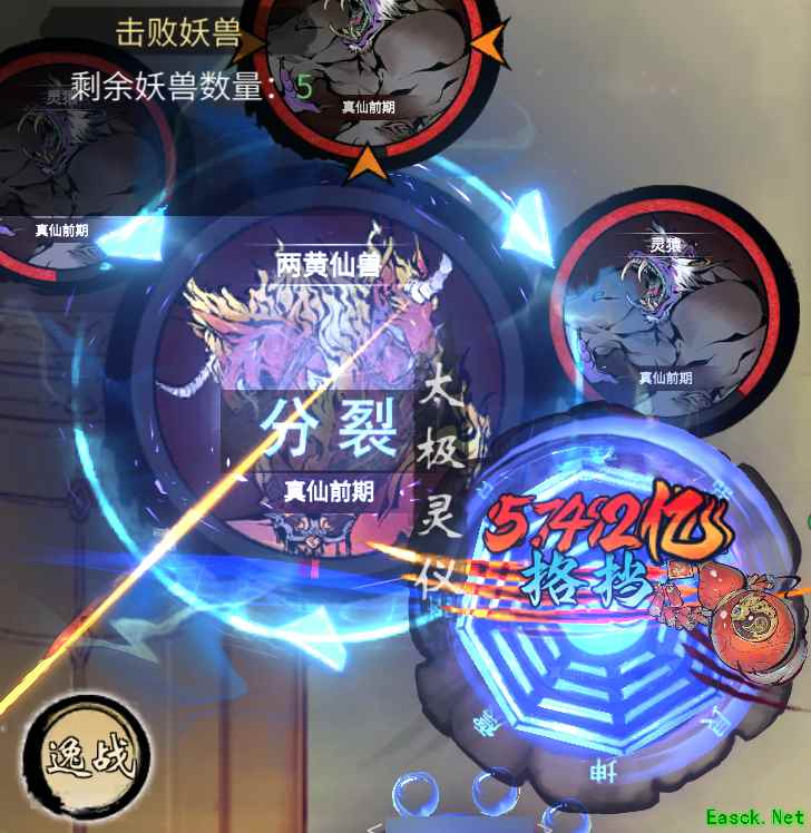 但是分裂精英怪的小怪数量太多了,神通容易清不完,推荐在打破四个分裂怪后,使用一次小世界金本源清场,快速高效。