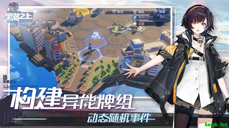《黑潮之上》是一款近未来都市背景,以异能者、穿梭时空为特色二次元回合制卡牌游戏。