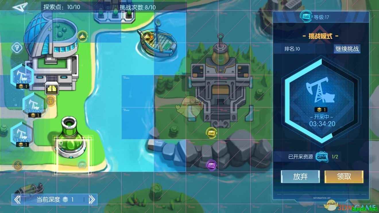 占橙万能碎的资源地,没打到,依据蓝色的来看普通8小时一个,挑战8小时两个(可能以后深度越高,给的能多些),普通同时采集两个,通行证3个