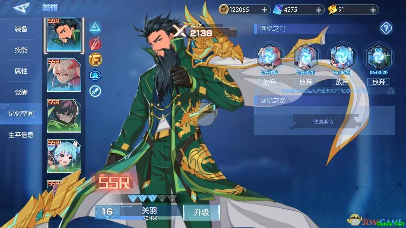 1、记忆空间(普通两个位置,通行证4个位置)可获得已有英雄的角色碎片