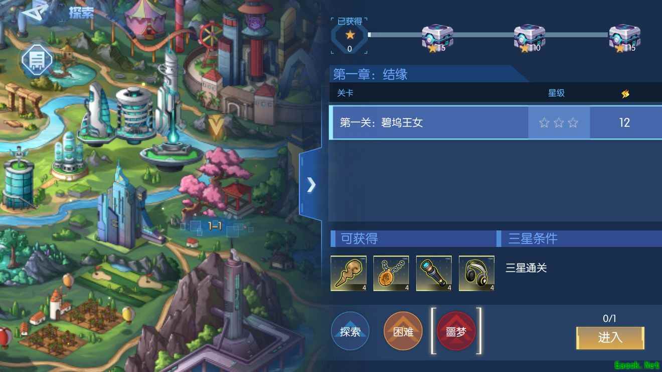 噩梦关卡:耗费12体力,通关掉落本关卡全部可获得装备是普通和困难的装备的2倍,每日限定挑战1/1(刷装备首选)