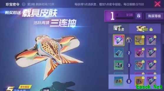 珍宝密令第3期将于3月5日5点更新,S级飞行器皮肤"游鱼水鸢”及众多其他好礼等你来拿!