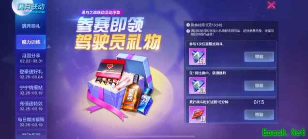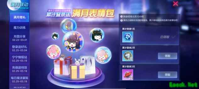 满月赠礼和魔力训练,今日已经正式开启,累计登陆和参赛就可以领取,满月表情包还有驾驶员礼物。