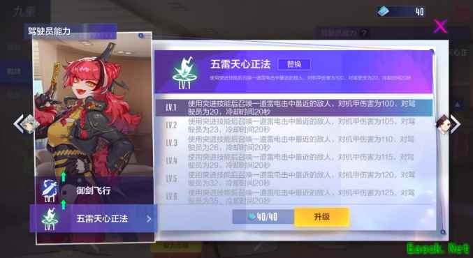 【五雷天心正法】:使用突进技能后召唤一道雷电击中最近的敌人,对机甲伤害为100-125,对驾驶员为20-35,冷却时间20秒