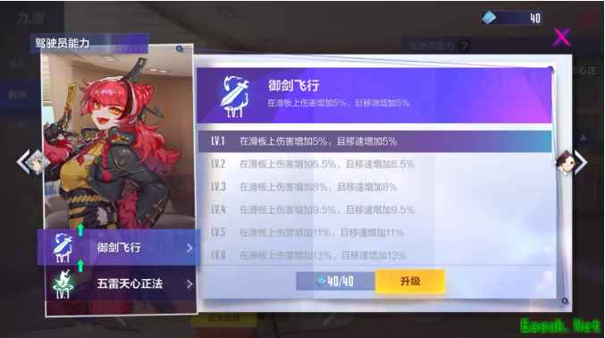 【御剑飞行】:在滑板上伤害增加5%-13%,且移速增加5%-13%