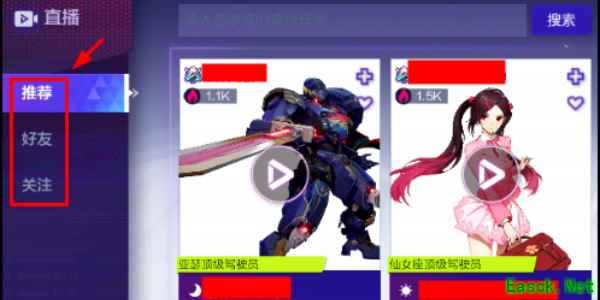 第二步:打开观战界面后,可以选择推荐、好友、关注三个选项进行观战。