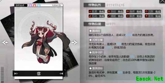 2、她的技能和这四只式神有很大关系,「秩序守护」,每一个式神就可以削弱敌方5%的防御力,当场上所有激活的式神存在时,自己不会死亡,每次攻击还会叠加暗蚀效果;「落英缤纷」技能,会复活式神,并回复它们80%的生命值;