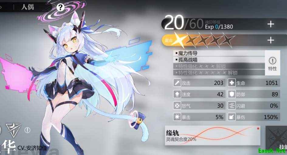 九华是一个外星猫娘,属性是雷/冰,技能组效果如下: